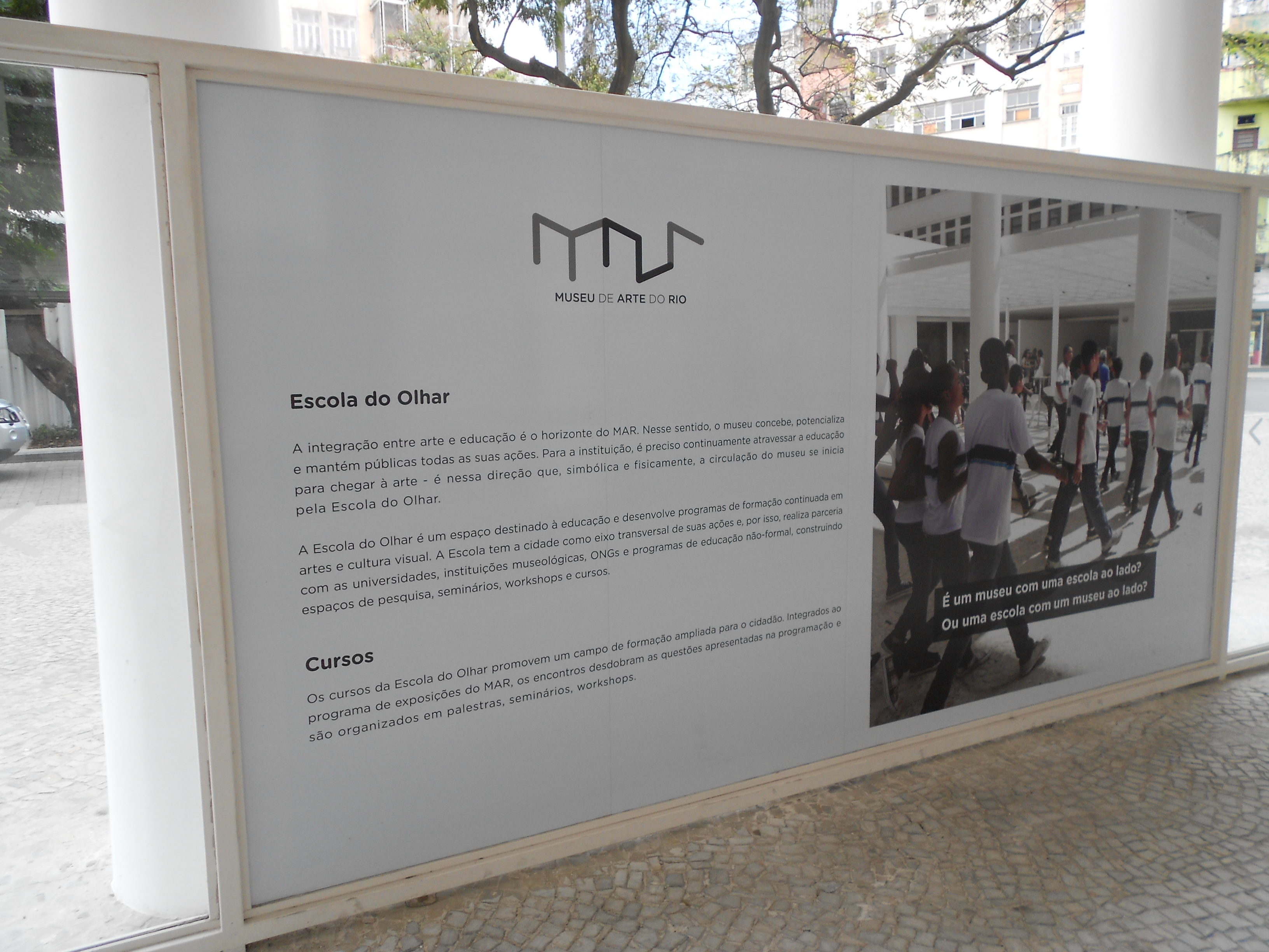 Situado na Zona Portuária do Rio e inaugurado em primeiro de março de 2013, o Museu de Arte do Rio (MAR) foi criado com uma proposta educacional e de cultura, uma ideia defendida pela Unesco. Ele se propõe a uma leitura transversal da história do Rio de Janeiro unindo o passado e o contemporâneo da cidade. É abrigado por dois edifícios distintos e de conceitos diferentes interligados por uma intervenção urbanística. Sua localização foi escolhida como parte da revitalização da região, antes degradada.