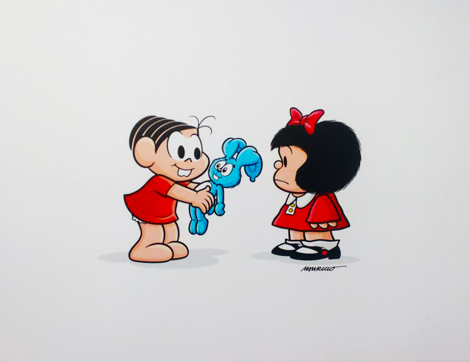 Uma das mais emblemáticas dedicatórias ao cartunista argentino está destacada no piso superior. O quadro que Maurício de Sousa fez em comemoração dos 50 anos de Mafalda, fica na área de quadrinhos. Nele, se vê Mônica oferecendo o famoso coelhinho de pelúcia Sansão à indagadora hermana. “Sou fã das duas personagens desde pequeno. Mesmo com perfis bem diferentes ver um encontro delas é muito legal”, comenta o estudante de Design gráfico, Thiago Augusto.