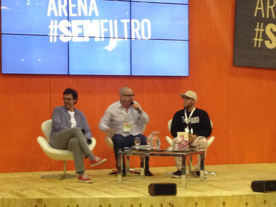 Durante o papo, foram feitas muitas perguntas sobre o mundo digital. Fechando com chave de ouro a conversa, os debatedores foram questionados sobre o que eles pensam da Bienal e por que eles acham a feira de livros importante para cultura. Mazzeo foi o primeiro a responder: “Acho que uma feira de livros como a Bienal é importante para incentivar essa nova geração a ler. O nosso país está passando por uma fase muito difícil e a cultura é a única coisa que possibilita a gente ter mais conhecimentos. Ler é muito bom. Incentivo muito meu filho a ler e trouxe ele hoje”.