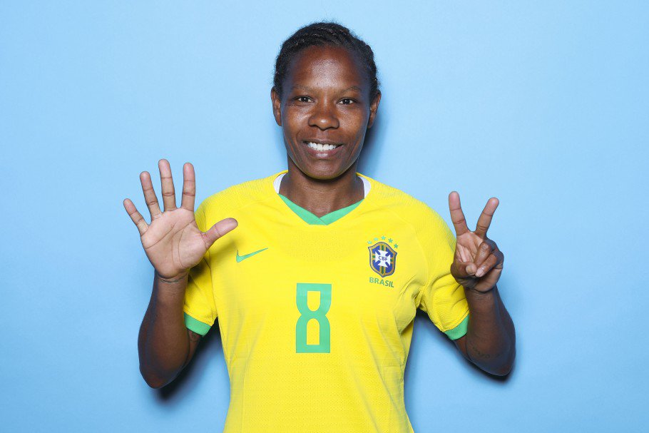 Outra jogadora experiente da seleção a fazer história foi Formiga. A volante, de 41 anos, foi a primeira atleta, entre homens e mulheres, a disputar sete mundiais. Esbanjando boa forma física, a jogadora mostrou na partida contra a Jamaica, que apesar da idade, pode contribuir muito com o time