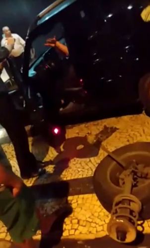 Depois, ela diz que não viu o veículo em que bateu e que, mesmo assim, pagaria o prejuízo. Porém, a discussão continua até que Bruna entra de novo em seu automóvel e tenta fugir. Mesmo sem roda, o veículo consegue seguir pela Rua Santa Clara, até que ele para em um ponto mais a frente da via.