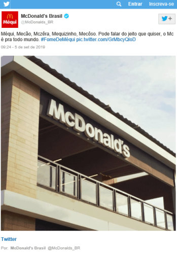 “Além de ser uma ideia que atinge boa parte da população, praticamente, nossa pronúncia sai como Méqui e alcança um número muito maior de clientes, por tratar de uma variedade linguística muito usada no país”, diz.