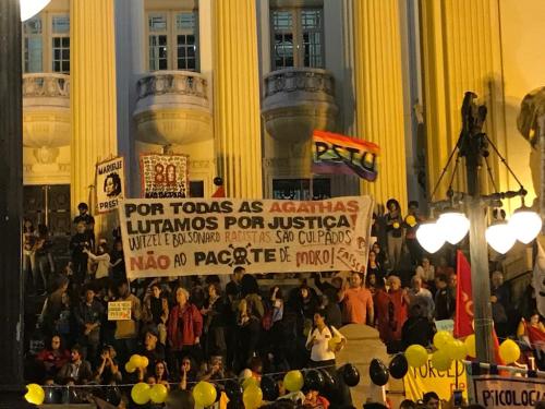 Diversos coletivos populares e moradores do Complexo do Alemão protestaram pelo fim da violência policial nas favelas nesta segunda-feira (23), em frente à Assembleia Legislativa do Estado do Rio de Janeiro (Alerj). O protesto foi organizado pelas redes sociais e marcado para acontecer às 17h, e terá também a participação dos pais da jovem Ágatha Félix, morta após ação da polícia. A principal reivindicação é que as autoridades mudem a política de segurança pública na cidade, que já causou número recorde de mortes em 2019, tanto de policiais quanto de inocente, incluindo 5 crianças.