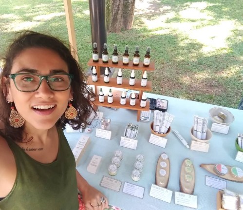 A vegetariana Lua Espinola, 33, é dona de uma marca natural para a pele e o corpo. Ela produz e comercializa produtos veganos. Lua afirma que esses produtos por virem da natureza e não de um laboratório possuem um resultado significativamente melhor, porque tratam o ser por inteiro, de maneira holística e não apenas estética.