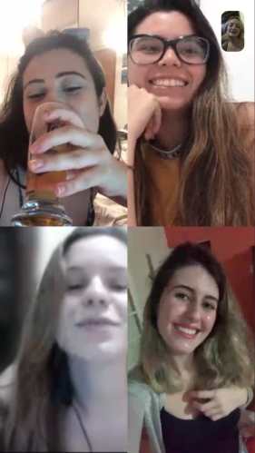 Uma forma segura e divertida de curtir as lives é fazer como esse grupo de amigas que entraram em uma vídeo chamada enquanto cada uma assistia de sua casa. Completamente fãs da dupla e muito próximas, elas disseram que foi a forma que encontraram de matar um pouco da saudade de saírem juntas.