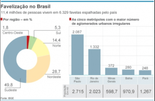 Segundo dados do Instituto Brasileiro de Geografia e Estatística (IBGE), 6% da população brasileira reside em favelas. São mais de 11 milhões de pessoas desassistidas durante essa pandemia, vivendo em conglomerados, muitas vezes impossibilitados de manterem o isolamento social, dividindo a casa pequena com vários familiares. São 6.329 favelas distribuídas por todo o território nacional, dividas entre 323 municípios.