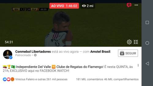 Com 2 milhões de visualizações simultâneas, o Flamengo segue quebrando recordes de audiência nas suas transmissões oficiais de partidas da equipe na rede social Facebook. Nesta quinta-feira, 17, em jogo válido pela terceira rodada da Copa Libertadores, a equipe carioca perdeu de 5 a 0 para o Independiente Del Vale da Bolívia, mas ainda há algo para se comemorar. Em partida pelo estadual, contra o Boavista, em julho, os números também impressionaram, de acordo com o presidente do Flamengo, Rodolfo Landim, o total de visualizações estava chegando em 14 milhões, entre ao vivo e quem viu posteriormente.