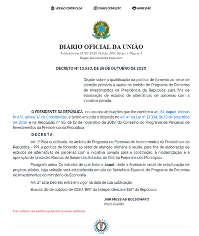 Em edição extra do Diário Oficial de ontem, o presidente Jair Bolsonaro revogou o decreto que liberava estudos sobre a privatização de Unidades Básicas de Saúde (UBS), do Sistema Único de Saúde (SUS).