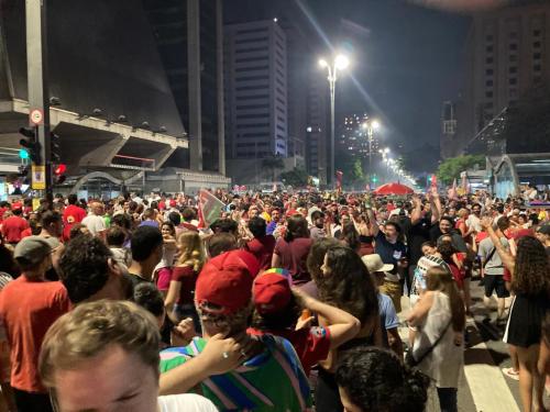 Após receber o resultado, Lula fez o seu discurso da noite para milhares de pessoas que estavam reunidas na Avenida Paulista. Diante de seus apoiadores, o presidente eleito afirmou que a vitória nas eleições é mérito de todos os homens e mulheres “que querem um país mais justo”.