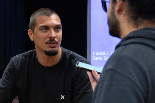 Luiz ainda chamou ao palco o colega de emissora e também estudante de Jornalismo na UVA, Gustavo Di Sarli, que por sua vez, ainda é estagiário na empresa e trouxe o seu ponto de vista.