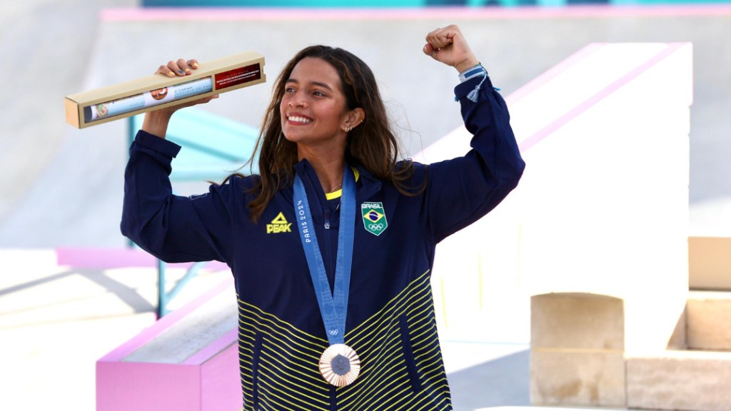 por Jorge Barbosa 28 de julho de 2024 4 Esporte Rayssa Leal conquista medalha de bronze no Skate Street em Paris 2024 Com apenas 16 anos, skatista chegou à sua segunda medalha olímpica